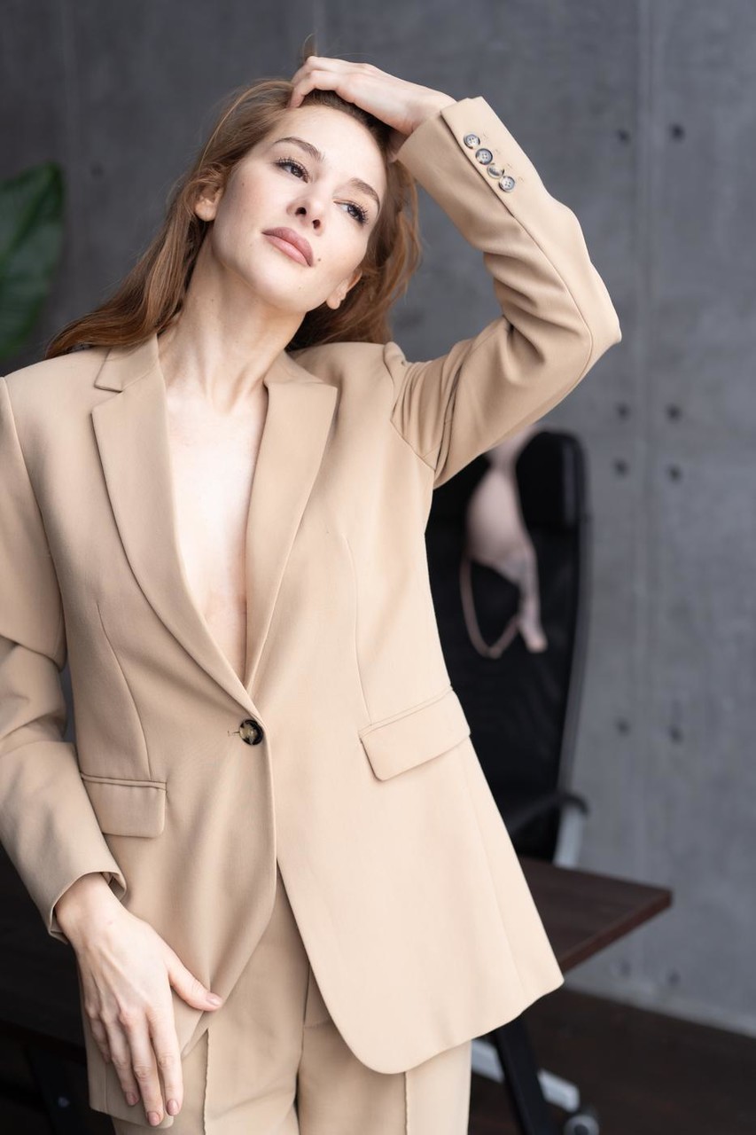 Gorgeous babe Maria Z teases with her incredible melons and poses in work pants