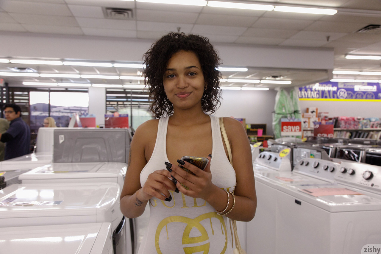 Black Noelle Monique hikes up her white dress & flashes her vagina & enormous boobs