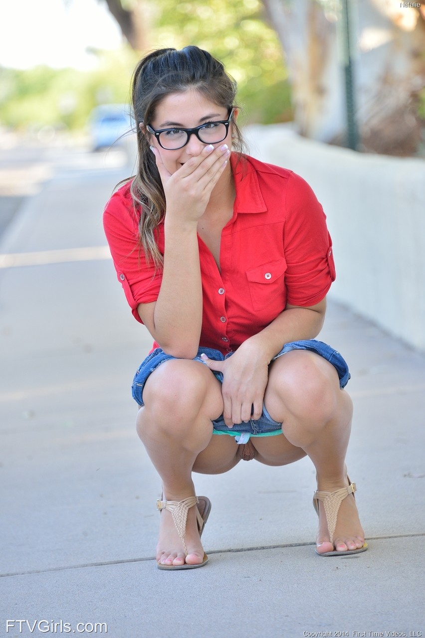 This gallery contains 20 high-quality images featuring Sexy babe in glasses Natalie fingering herself after getting dirty in public. Browse this Teen gallery featuring Natalie Monroe.