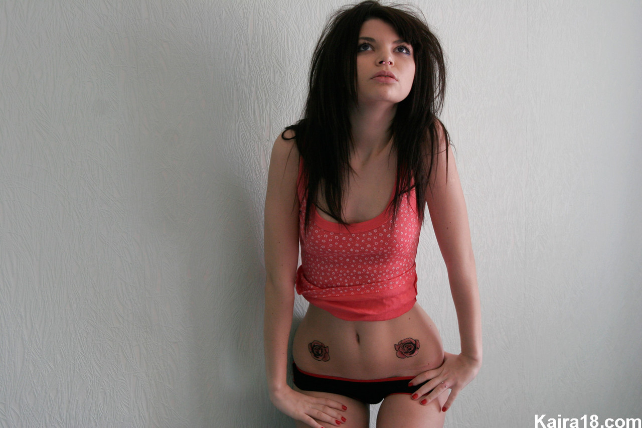 This gallery contains 15 high-quality images featuring Skinny teen Kaira 18 shows her new tattoos while getting undressed on her bed. Browse this Babe gallery featuring Kaira 18.