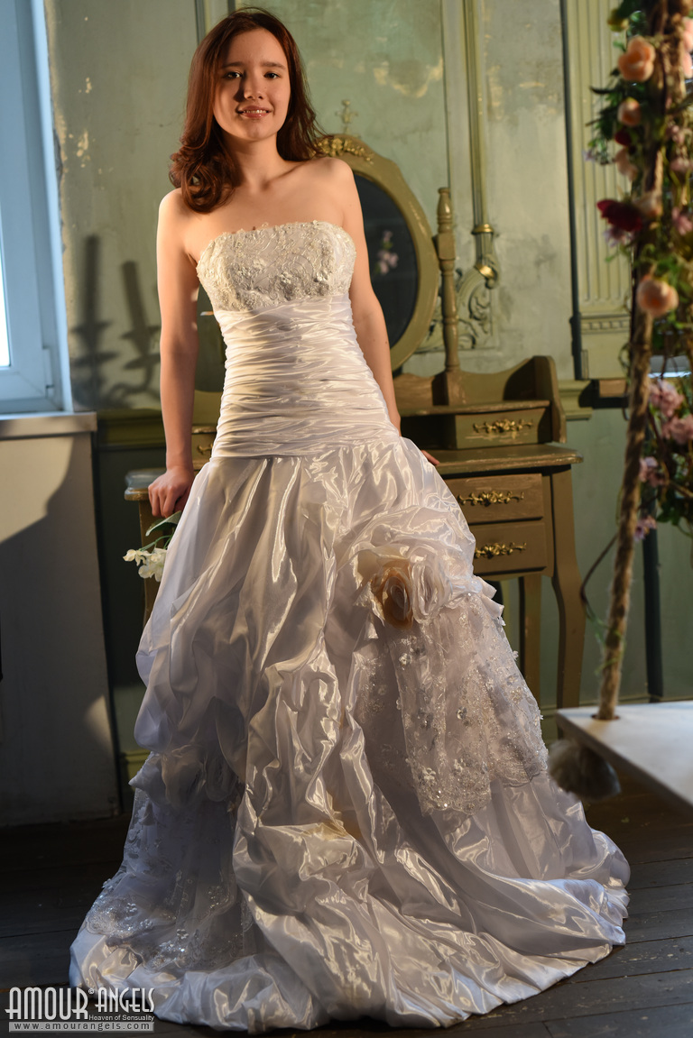 This gallery contains 20 high-quality images featuring Teenie bride frees her massive naturals from wedding dress as she strips undressed. Browse this Babe gallery featuring Jennifer.
