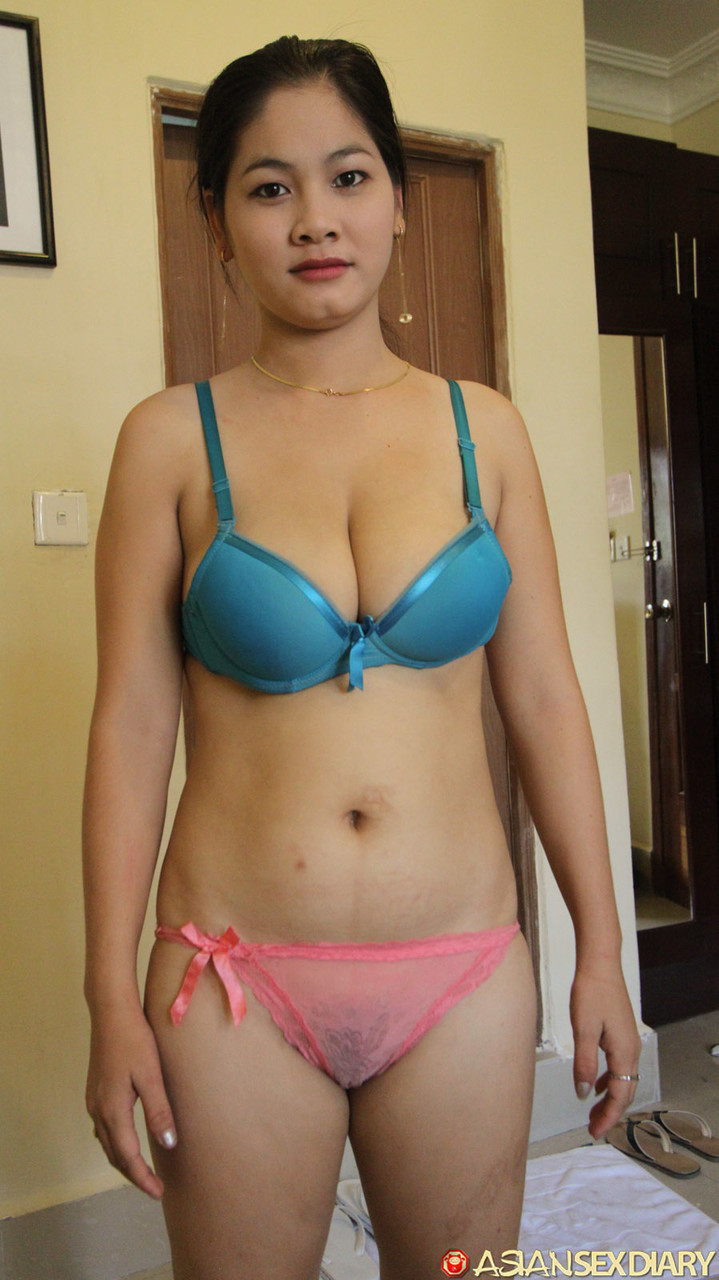 Chubby Thai whore GF woman Nga shows her humongous melons and spreads her legs for a schlong