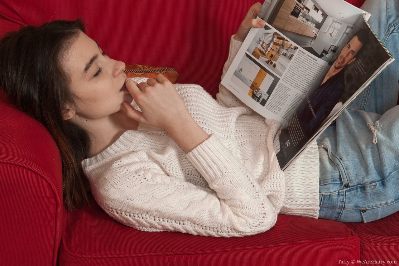 This gallery contains 16 high-quality images featuring Hot college brunette Taffy touching her harry holes on the sofa. Browse this Masturbation gallery featuring Taffy.