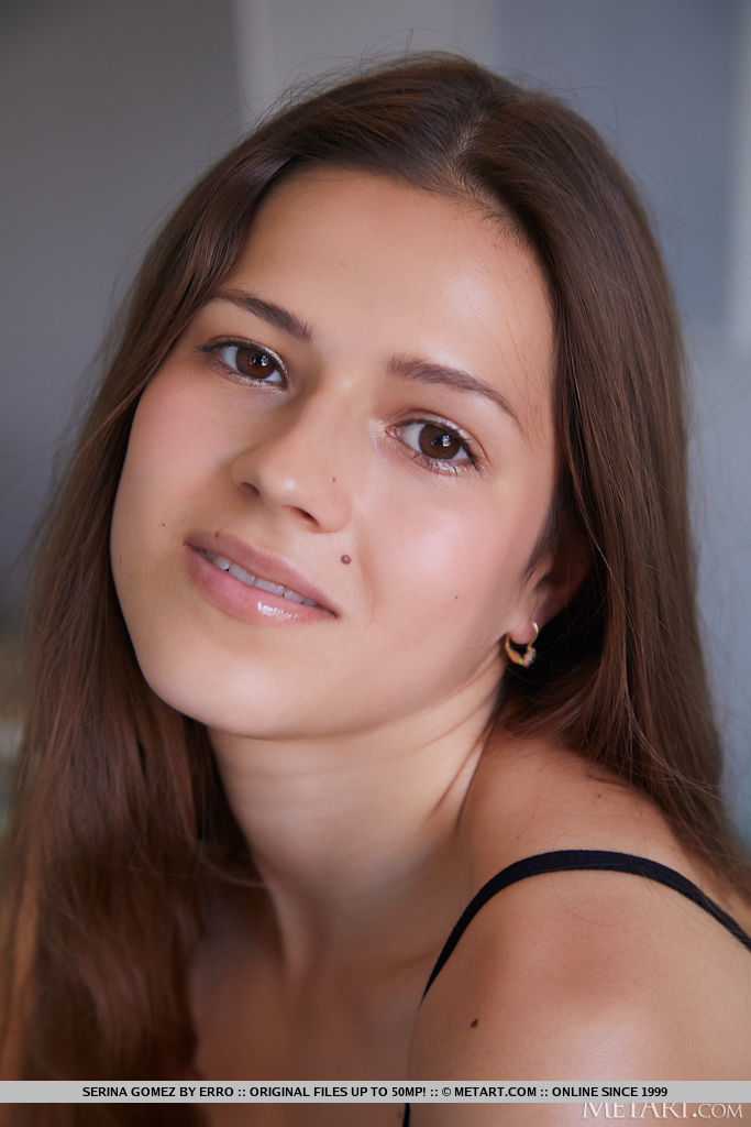 This gallery contains 18 high-quality images featuring Young young brunette Serina Gomez shows her nice cunt while doffing a bodystocking. Browse this Model gallery featuring Serina Gomez.