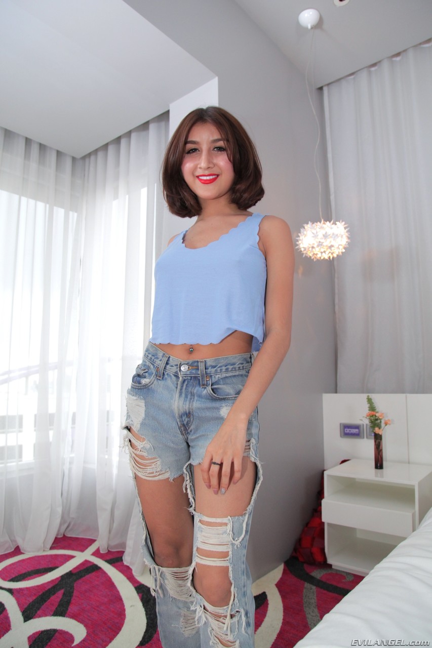 This gallery contains 16 high-quality images featuring Tgirl brunette presenting her weiner and anal hole in the bedroom. Browse this Ladyboy gallery featuring Alice G.