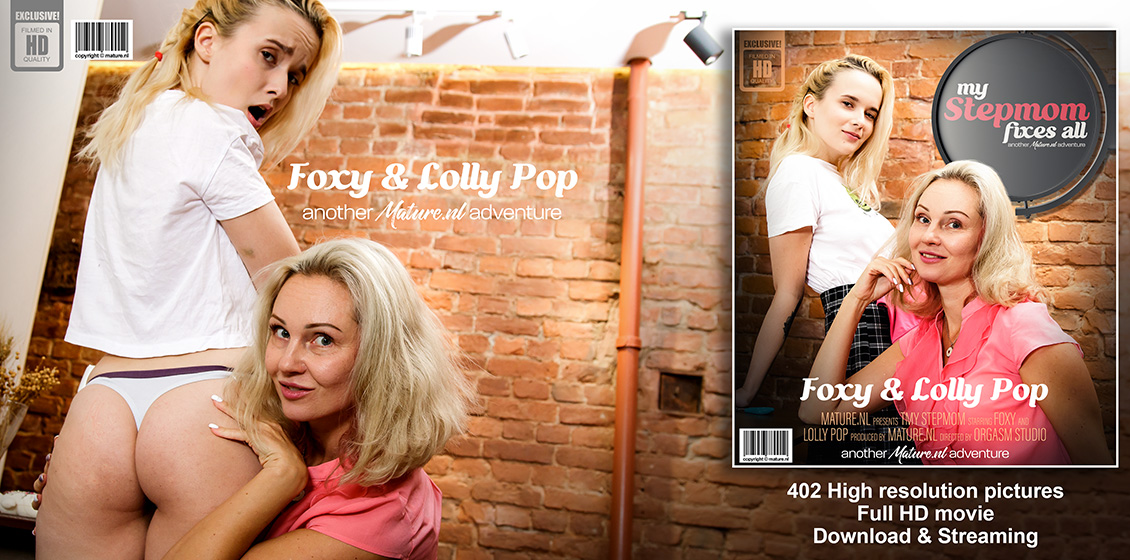 Yellow-haired girl Foxy has lesbian sex with her stepdaughter Lollypop
