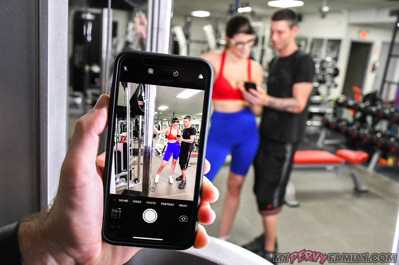 Brunette teenie Michele James has sex in glasses after a gym workout