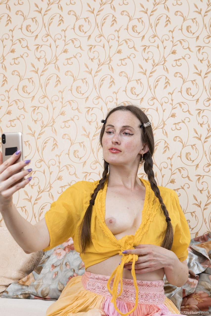 American hottie Ley Ozzy shows off her fine lovely boobies & spreads her bushy snatch