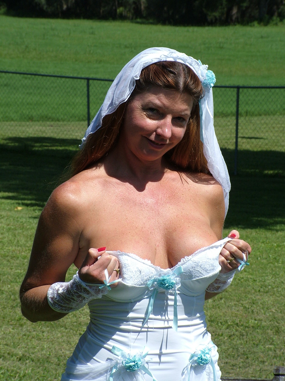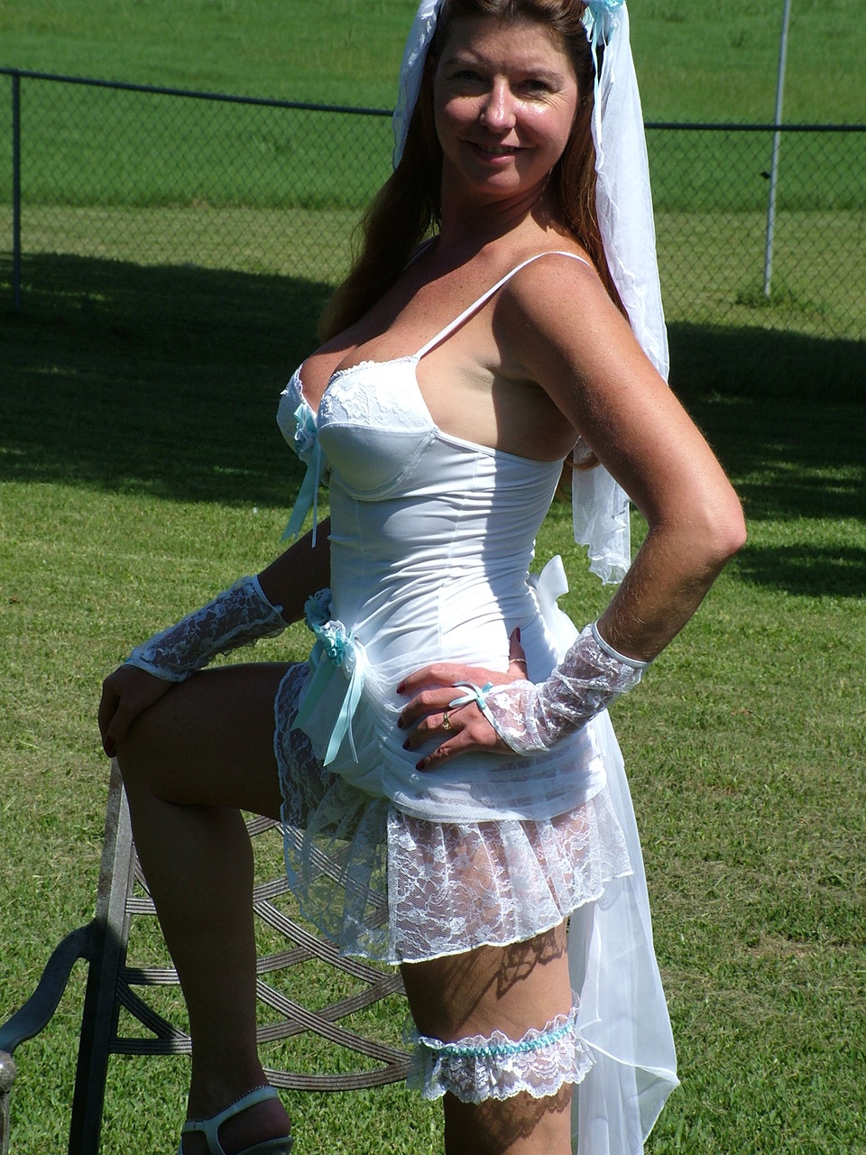 This gallery contains 20 high-quality images featuring Slutty mature bride reveals her juggs and fingers her clam on an outdoor chair. Browse this Outdoor gallery featuring Dee Delmar.