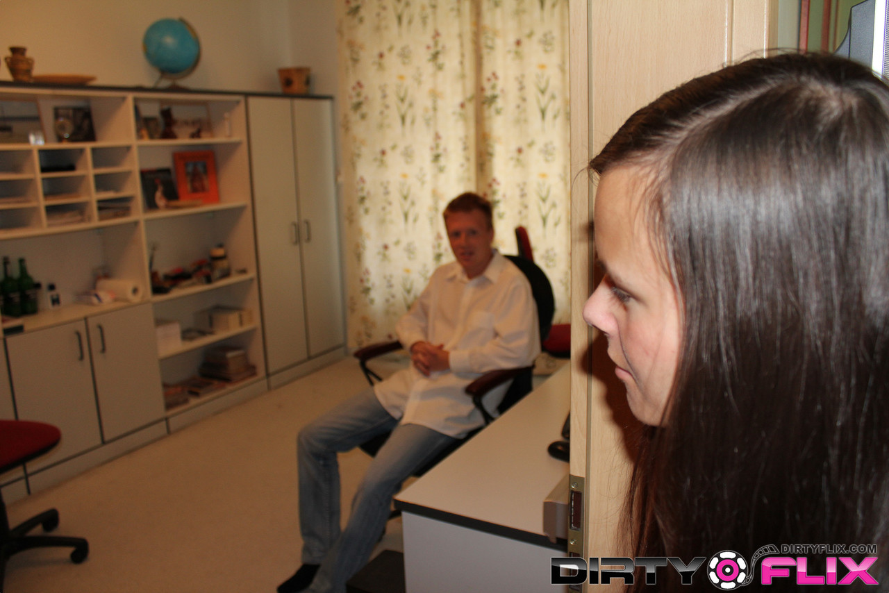 Brunette teenie Amanda ties up her boy and fucks a stud in front of him