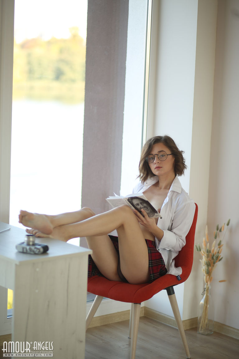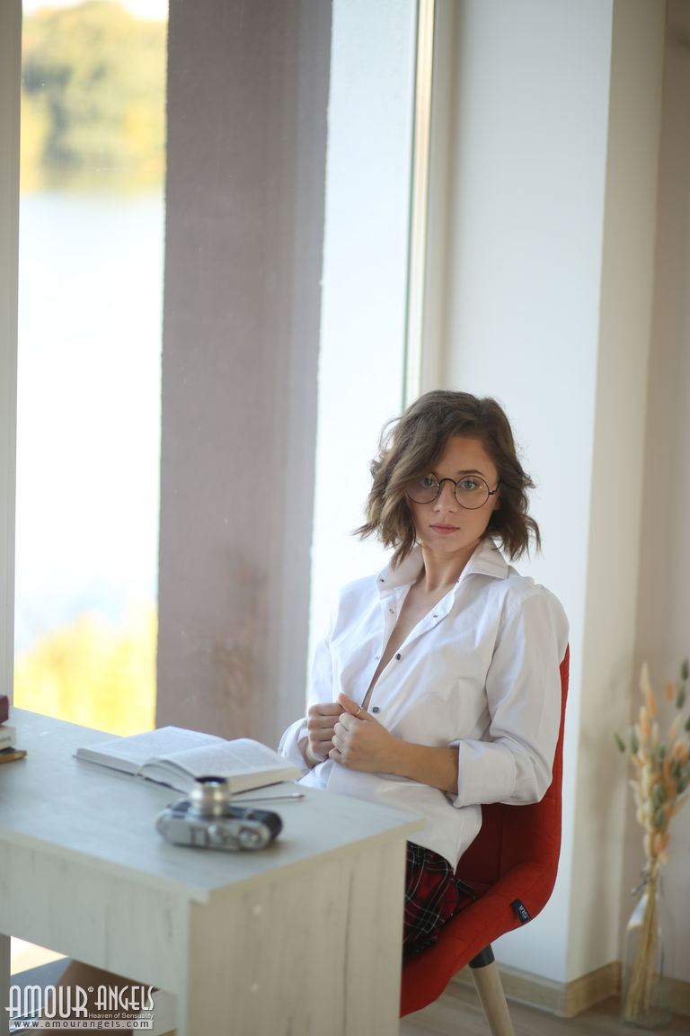 This gallery contains 20 high-quality images featuring First timer Katrina peers over her glasses prior to getting bareback nude. Browse this Teen gallery featuring Katrina.