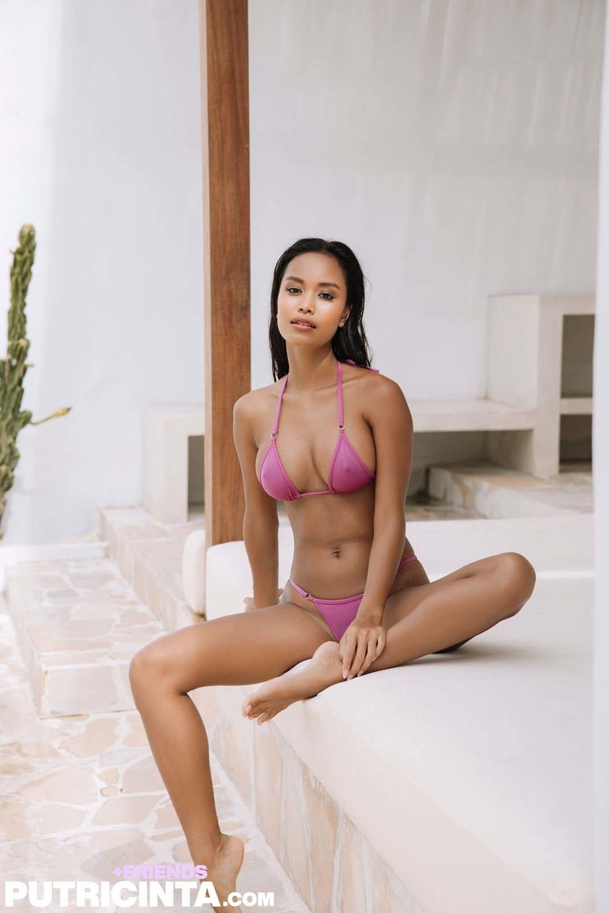 This gallery contains 20 high-quality images featuring Thin babe peels off her undergarment & shows off her ravishing breasts by the pool. Browse this Model gallery featuring Putri Cinta.