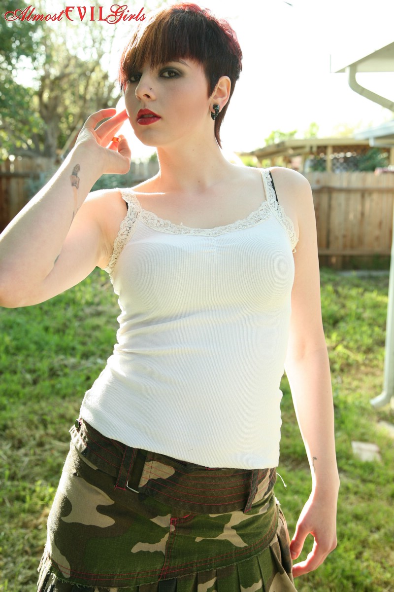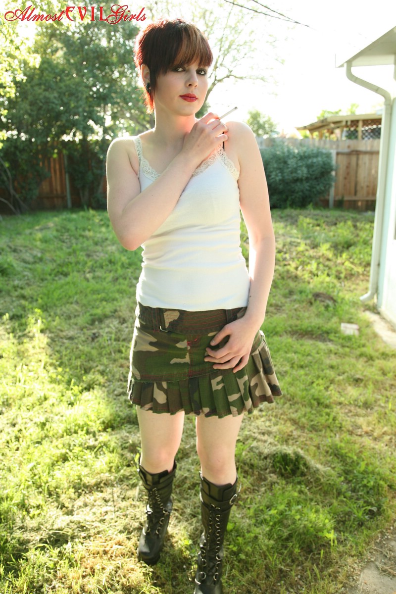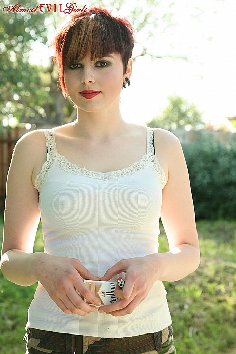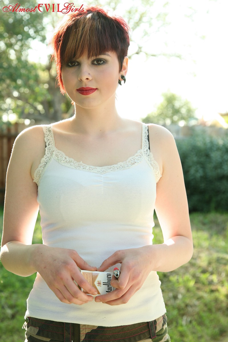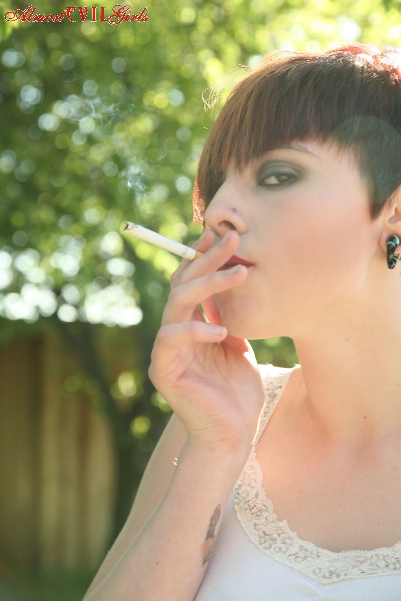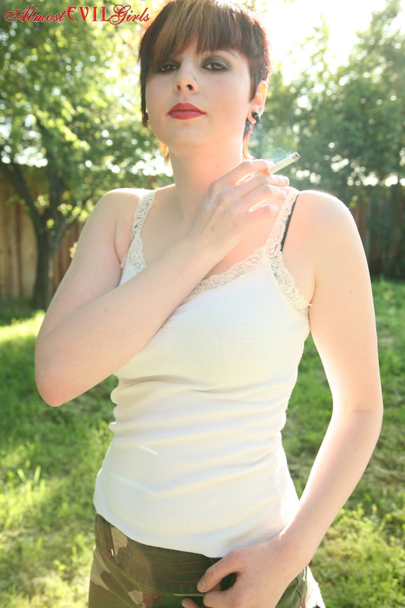 This gallery contains 15 high-quality images featuring Short haired girl GF broad Morna flashes titties and cunt while smoking in backyard. Browse this Outdoor gallery featuring Morna.