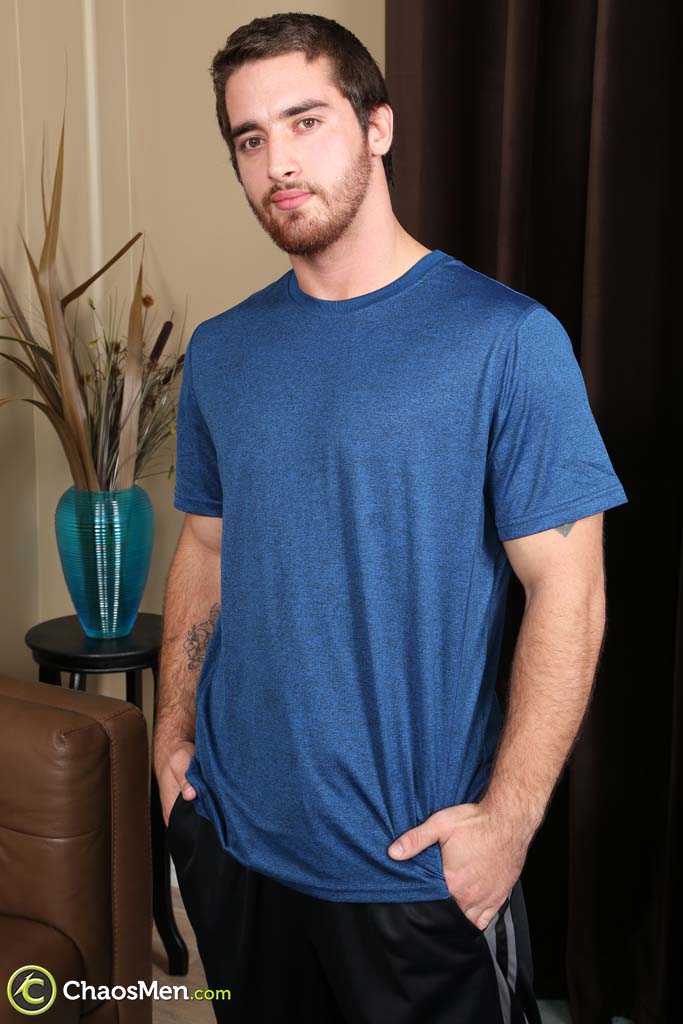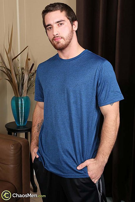 Gay brunette Shepherd reveals his inked hairy chest and rock hard penis