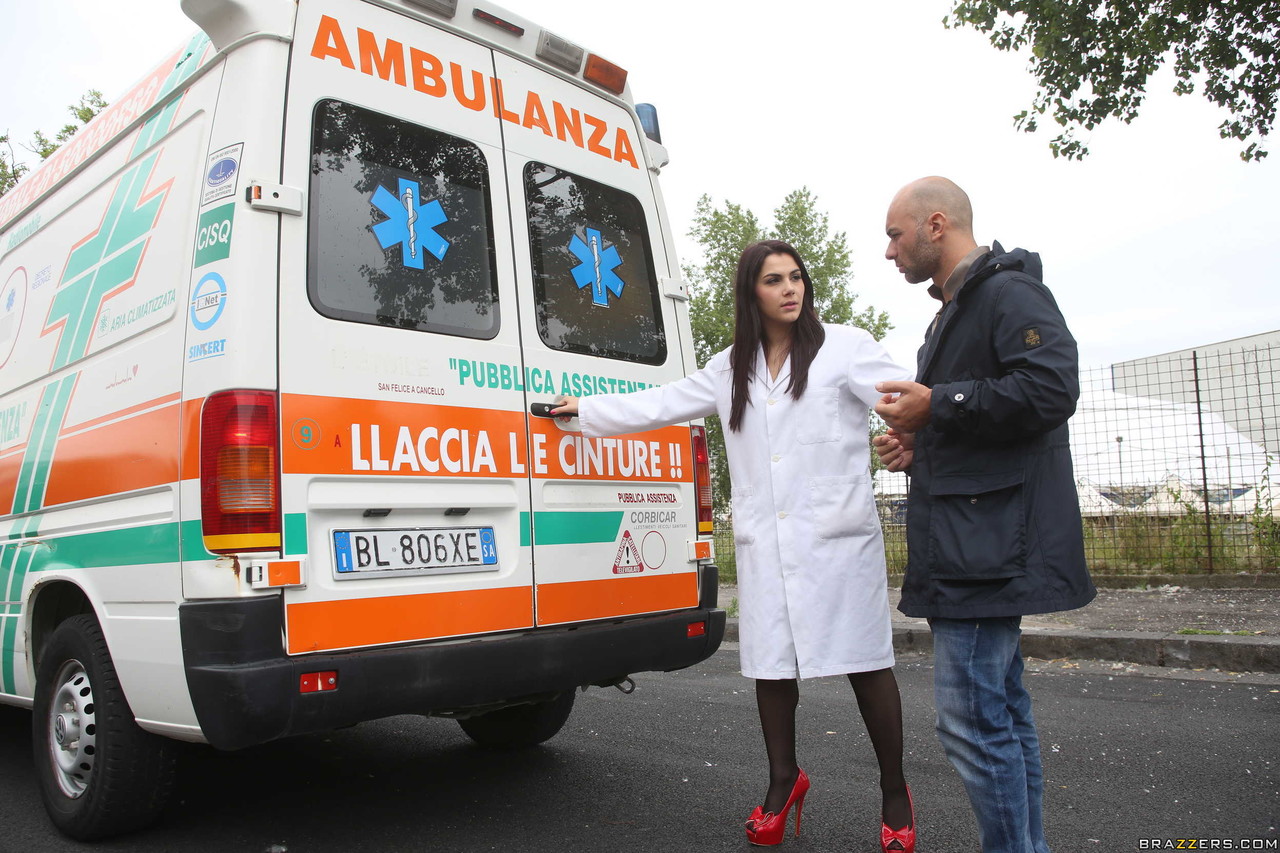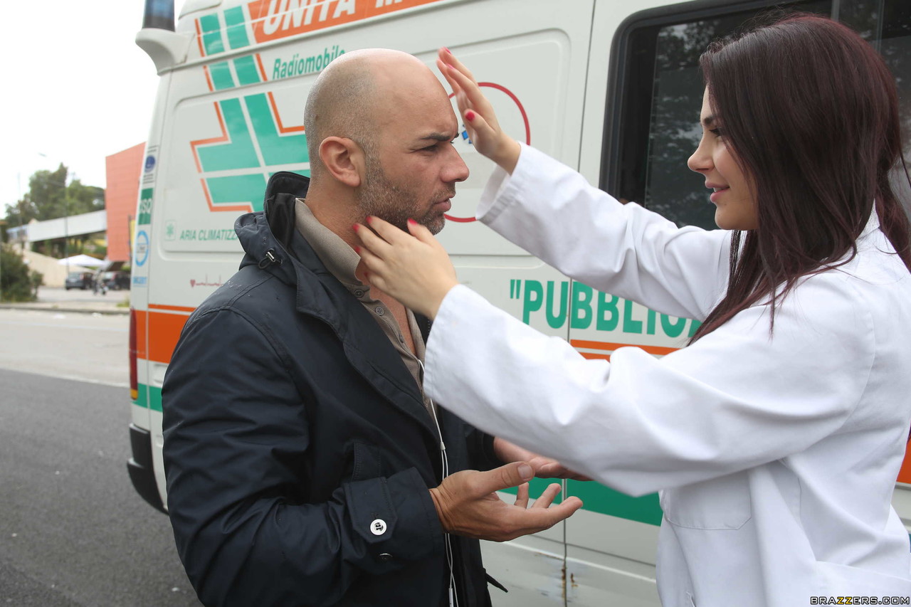 Italian nurse Valentina Nappi licks and rides an injured dude in an ambulance