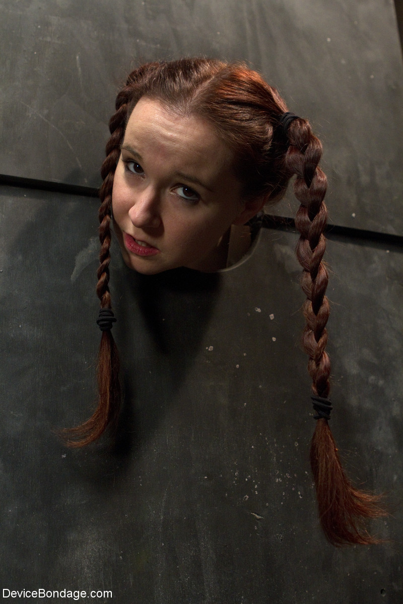 Young AnnaBelle Lee gets humiliated while being trapped in a standing stock