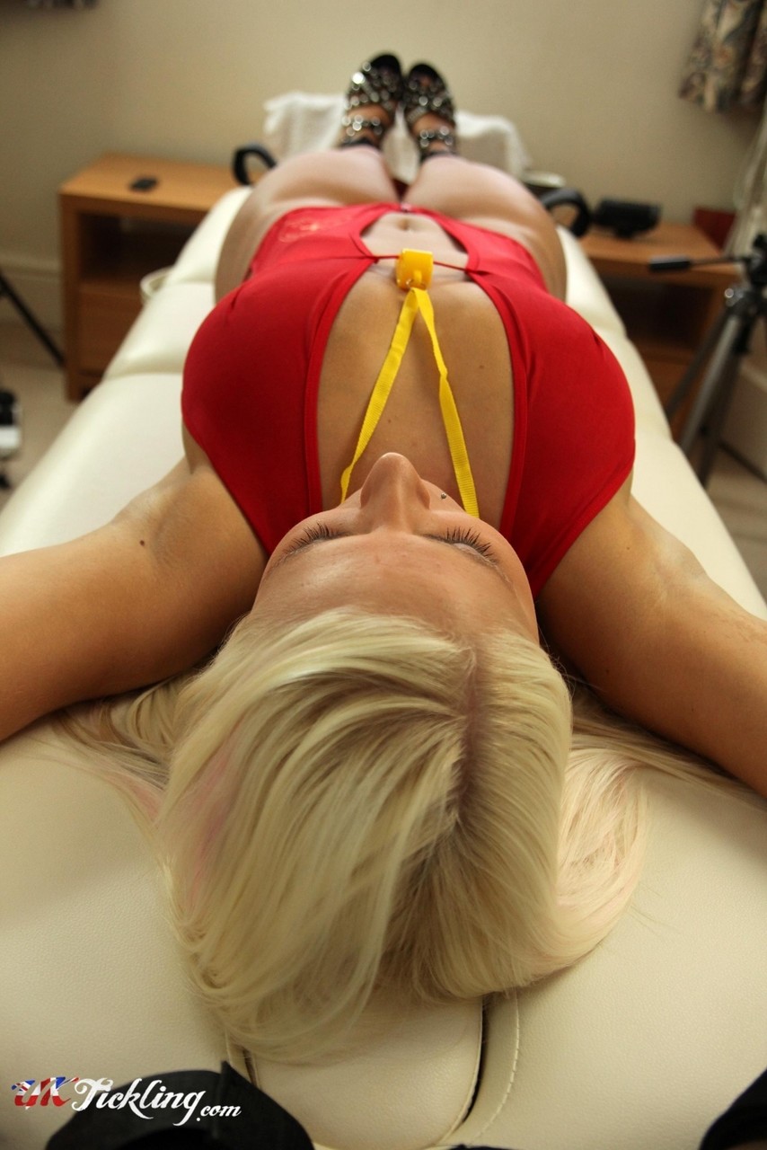 This gallery contains 12 high-quality images featuring Busty yellow-haired Sarah Jayne is strapped to a table with her stunning pretty feet showing. Browse this Close Up gallery featuring Sarah Jayne.