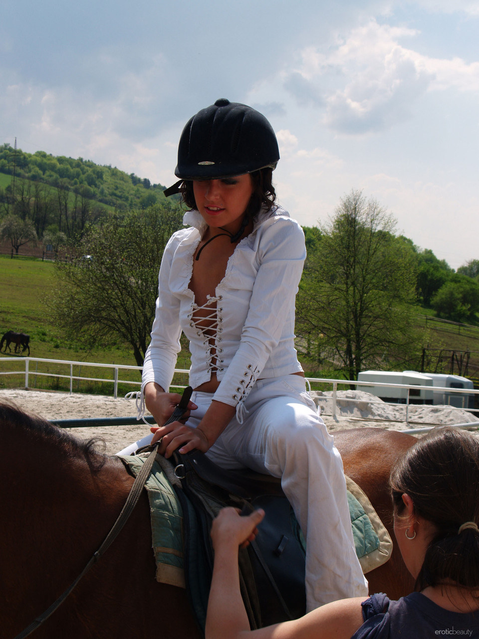 This gallery contains 20 high-quality images featuring Naughty Polish horse rider Joan White strips completely naked outdoors. Browse this Model gallery featuring Joan White.