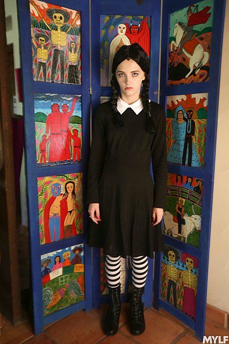 Brunette babe Audrey Noir & her slutty family having kinky sex on Halloween