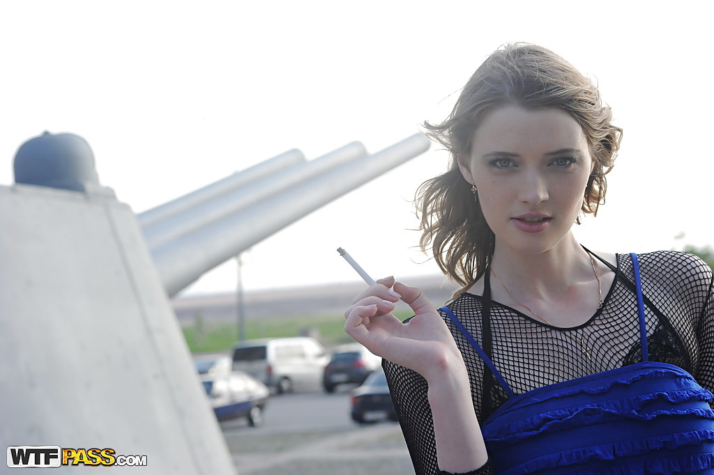 This gallery contains 16 high-quality images featuring Amazingly pretty tasty babe in stockings smoking and doing upskirt outdoor. Browse this Pussy gallery featuring Lenya.