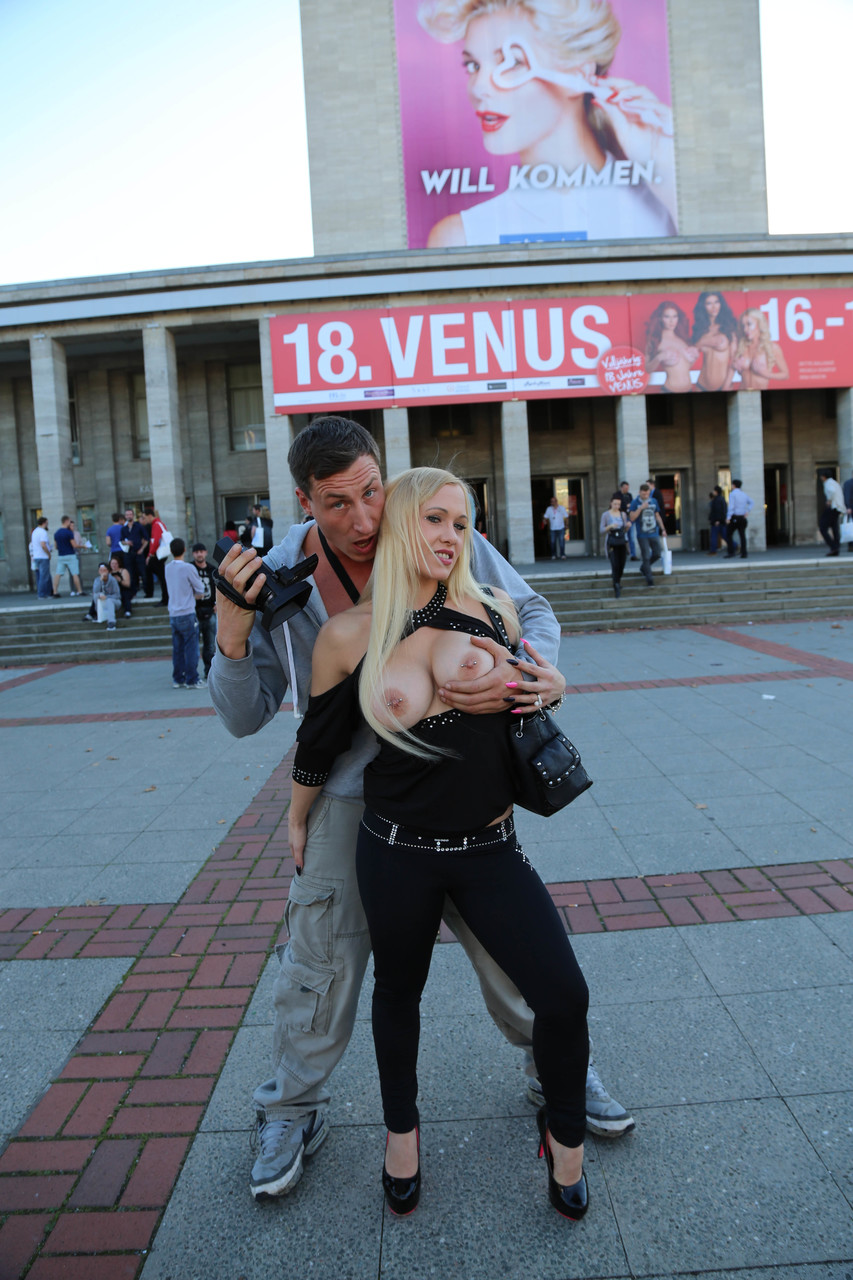 This gallery contains 17 high-quality images featuring Blonde German lady broad Celena Davis flashes gigantic boobs and ass in public square. Browse this Ass gallery featuring Mario Fash, Celina Davis, Jason Steel.