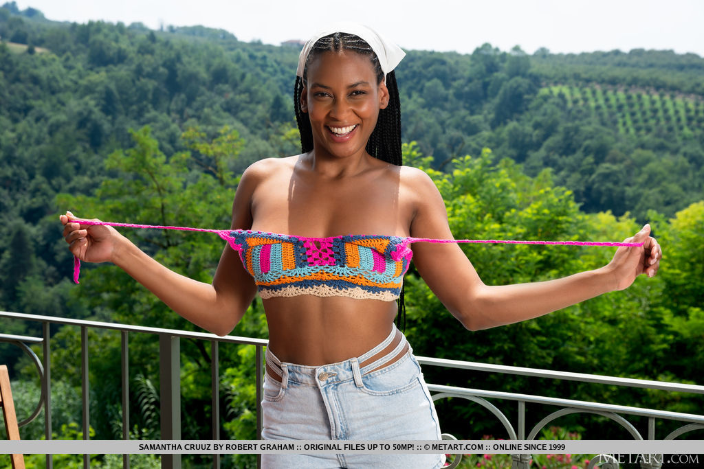 This gallery contains 18 high-quality images featuring Black teenie Samantha Cruuz displays her hot body on a balcony with a view. Browse this Model gallery featuring Samantha Cruuz.