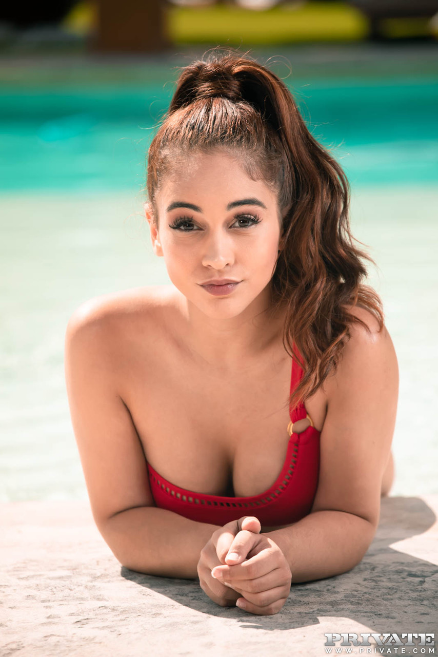 Charming bitch gf chick Ginebra Bellucci wears her hair in a ponytail during a poolside fuck