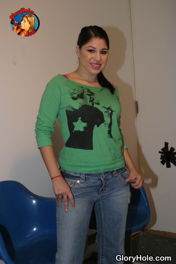 Wide hispanic brunette Brittany Stevens gets nude before a gloryhole oral sex
