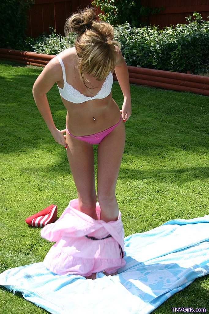 This gallery contains 21 high-quality images featuring Pretty teens Emma & Brooke show their thin bodies in their lingerie by the pool. Browse this Lesbian gallery