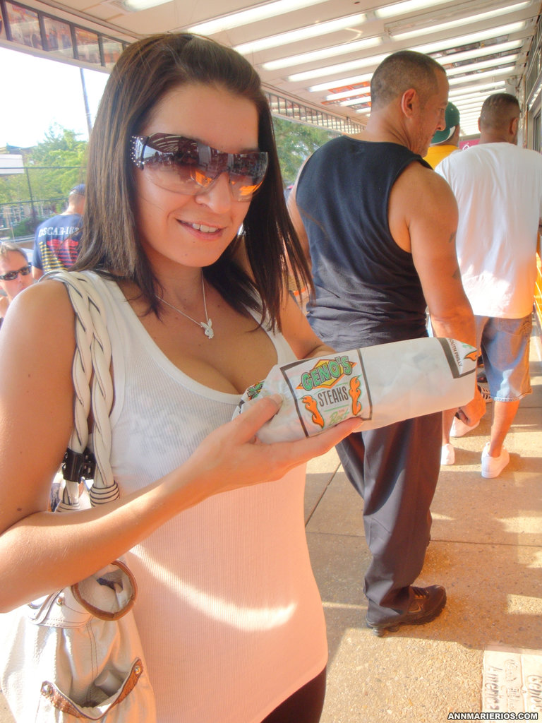 Latina MILF Ann Marie Rios is captured in candid action at a XXX convention