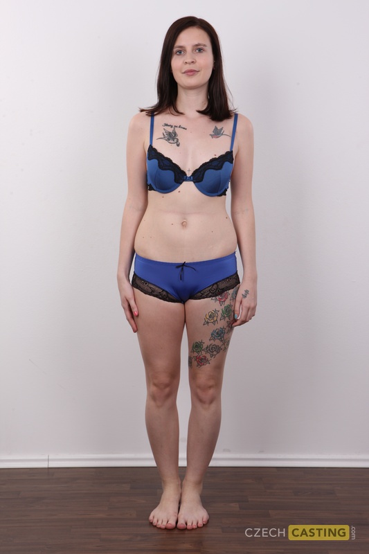 Amateur model Veronika shows off her tattoos while getting nude