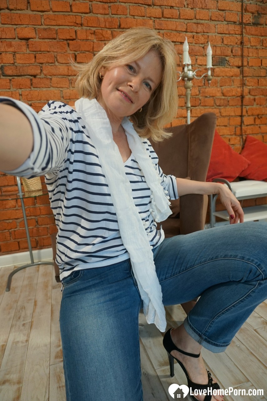Cougar cutie exposing her small natural tits & humongous behind in a solo
