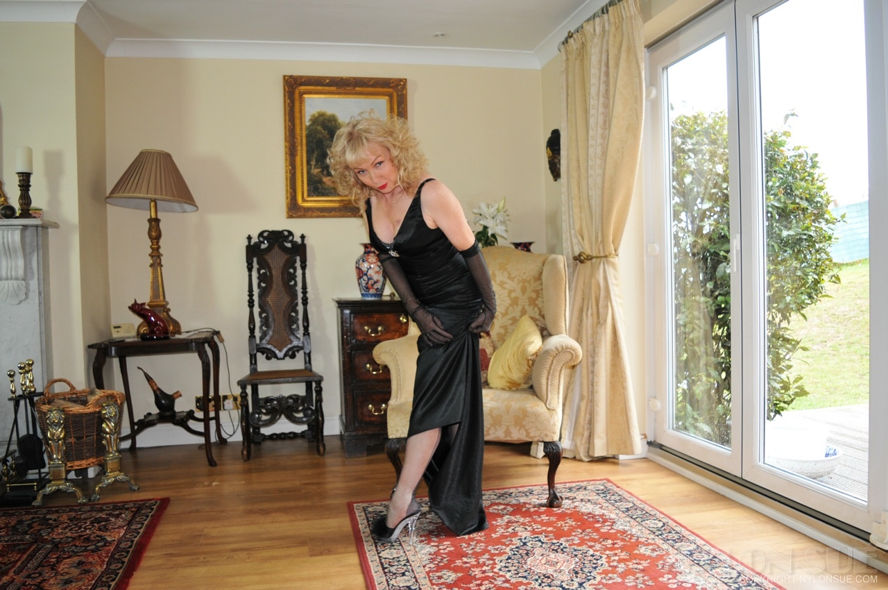 This gallery contains 15 high-quality images featuring Cougar blondie Nylon Sue pulls down her lingerie while bent over in pantyhose. Browse this Legs gallery featuring Nylon Sue.