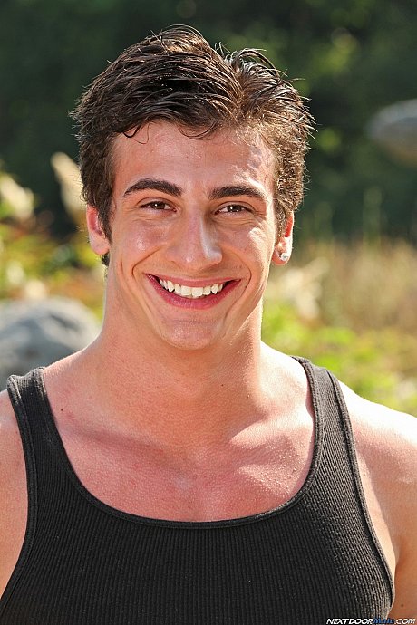 Horny muscular gay Mario Torrez undresses and poses by the lake