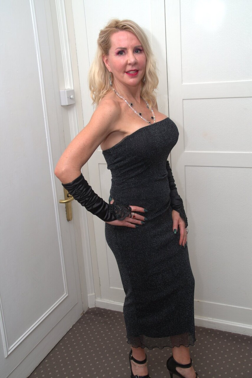 This gallery contains 16 high-quality images featuring Old blondy Emerald models a Christmas outfit before a black hubby boy man kisses her. Browse this Skirt gallery featuring Emerald.