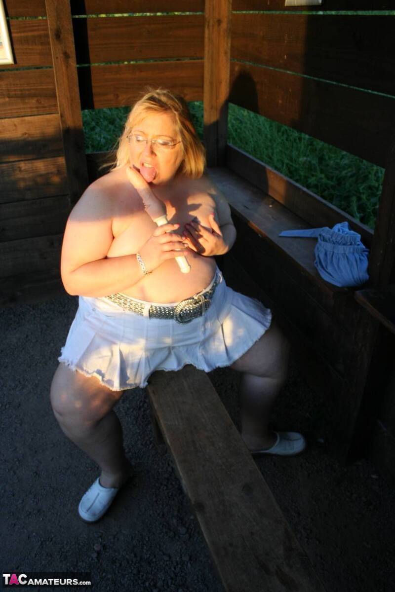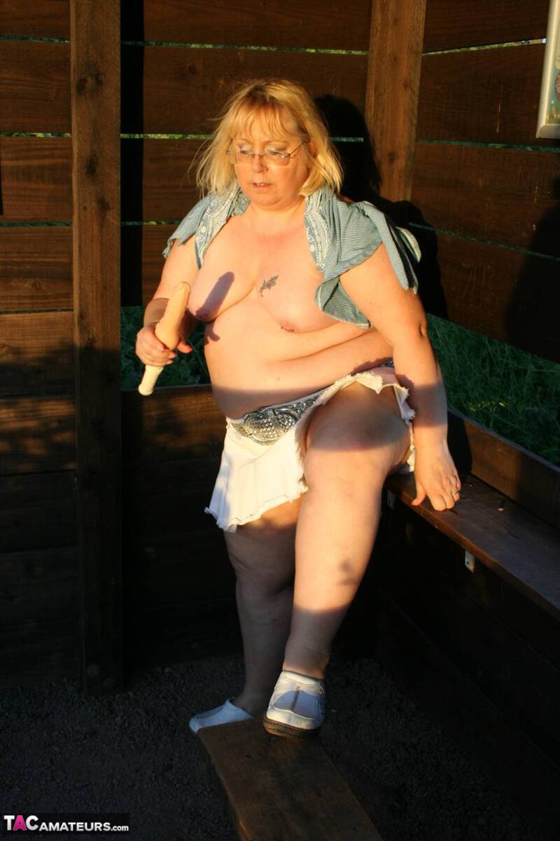 This gallery contains 16 high-quality images featuring Old fatty Lexie Cummings masturbates with a sex toy in a backyard. Browse this Dildo gallery featuring Lexie Cummings.