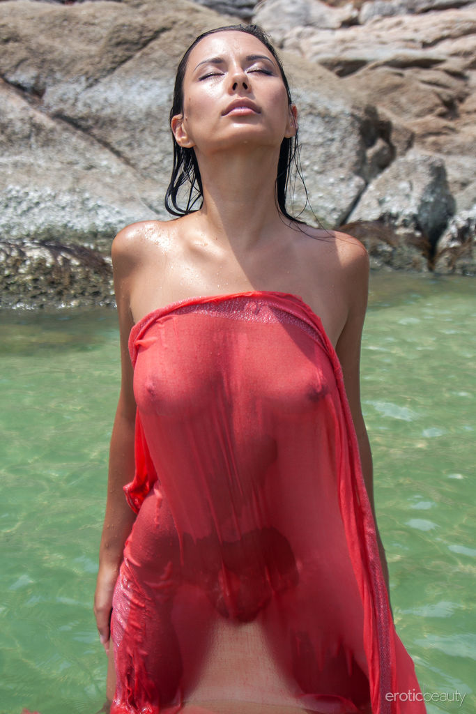 This gallery contains 16 high-quality images featuring Brunette teenie Nov Lera plays with her hair while showing her melons in the ocean. Browse this Model gallery featuring Nov Lera.